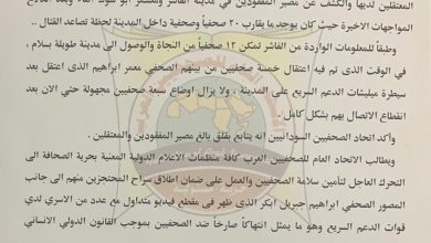 الاتحاد العام للصحفيين العرب يتضامن مع نقابة الصحفيين اليمنيين فى عدن ضد الإجراءات التعسفية من السلطات اليمنية